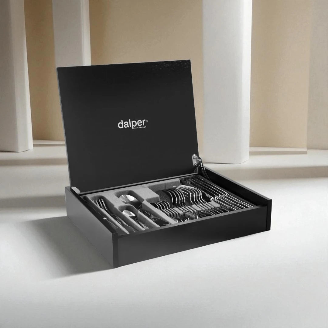 Elevate your dining experience with this premium Dalper cutlery set, crafted in Portugal and elegantly presented in a wooden storage box.