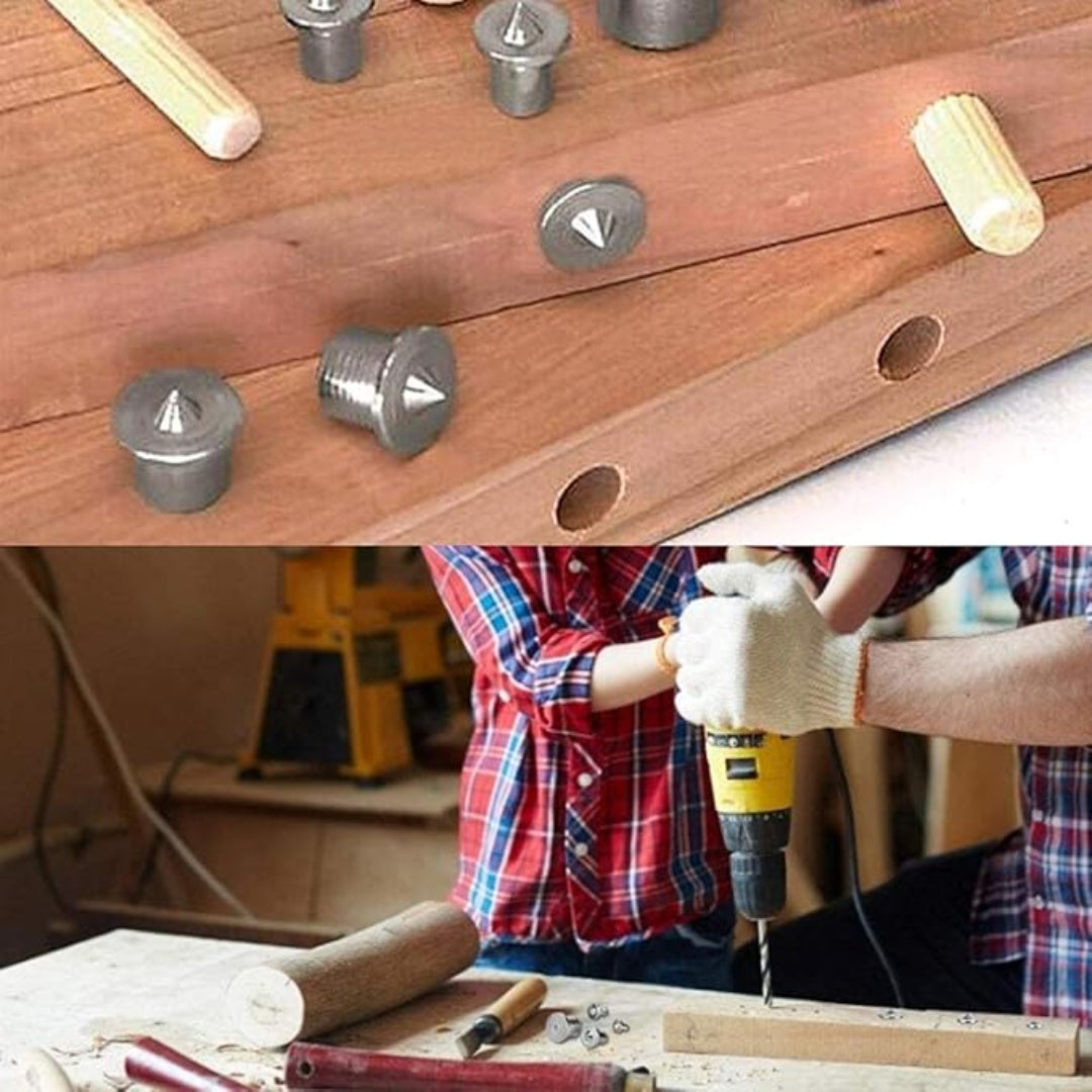 Drill with perfect alignment using the Parkside Centering Pin Set – ideal for accurate dowel positioning in woodwork projects.