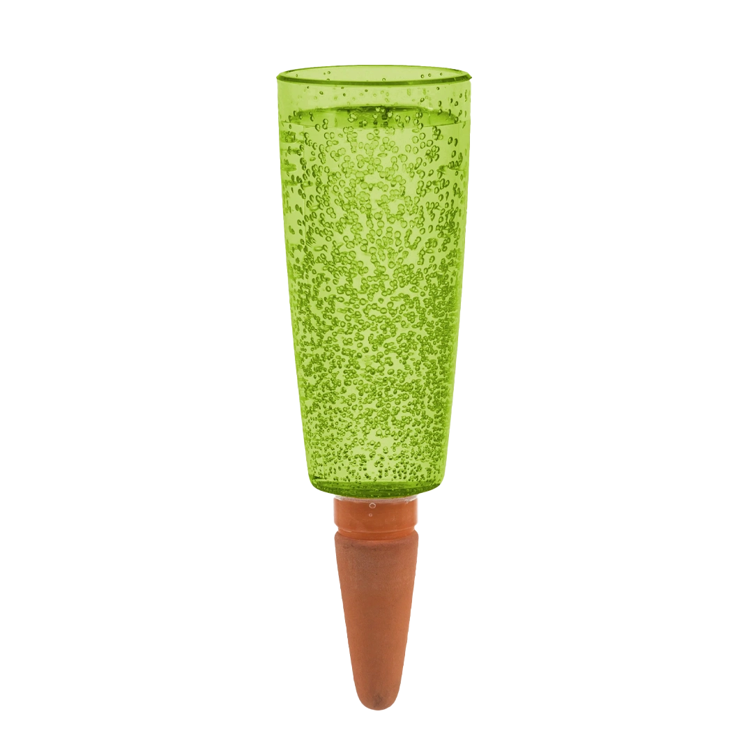 Copa is an elegant watering device crafted from UV-resistant translucent plastic. Serving as a water reservoir, it waters plants in the garden, on terraces and balconies, as well as indoor areas. Simply fill with water, and it gradually dispenses moisture through its clay tip. The plant absorbs only the water it requires. It ensures your plants are watered even when you're away. It has a capacity of 5oz and measures 2.5" in width, 2.5" in depth, and 7.5" in height, weighing 0.5lb.