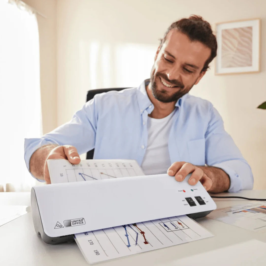Give your documents, photos, or presentations a polished and durable finish with the United Office Laminator. Sleek and easy to use, perfect for home offices, schools, and professional settings. Protects against tears, moisture, and stains.